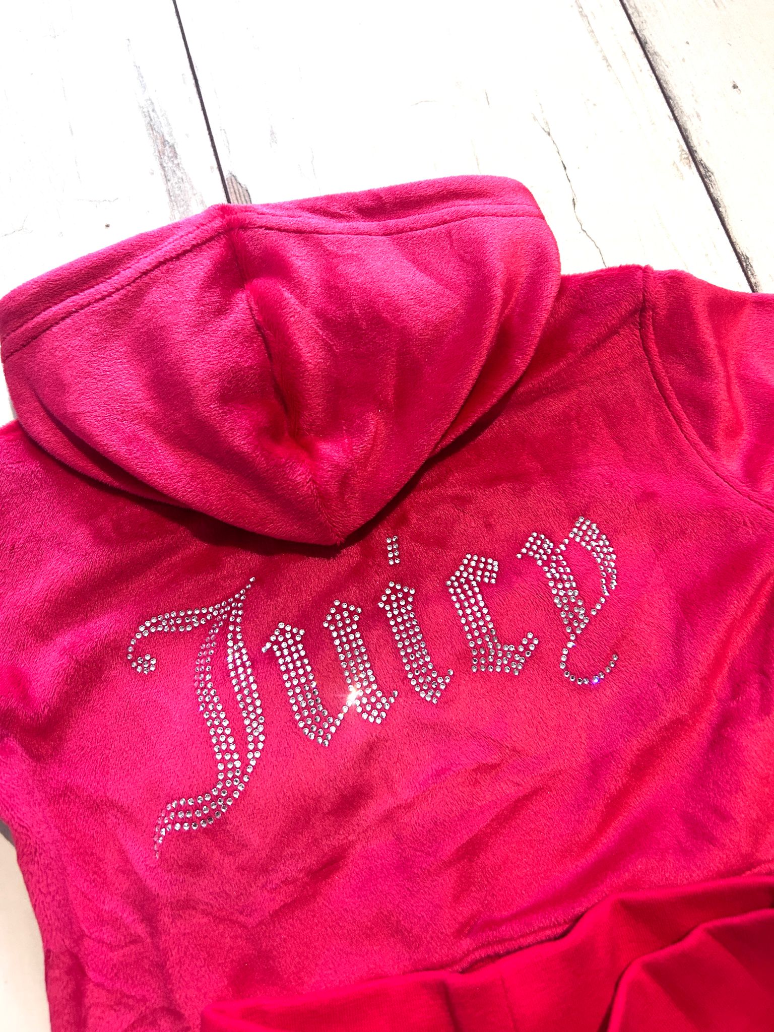Red Baby Velour Diamanté Zip Hoodie & Joggers Set