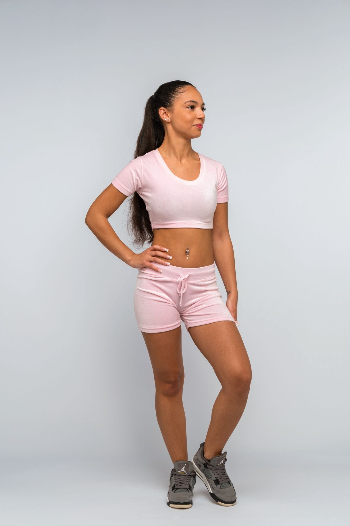 Essential Pink Velour Crop T-Shirt & Short Set