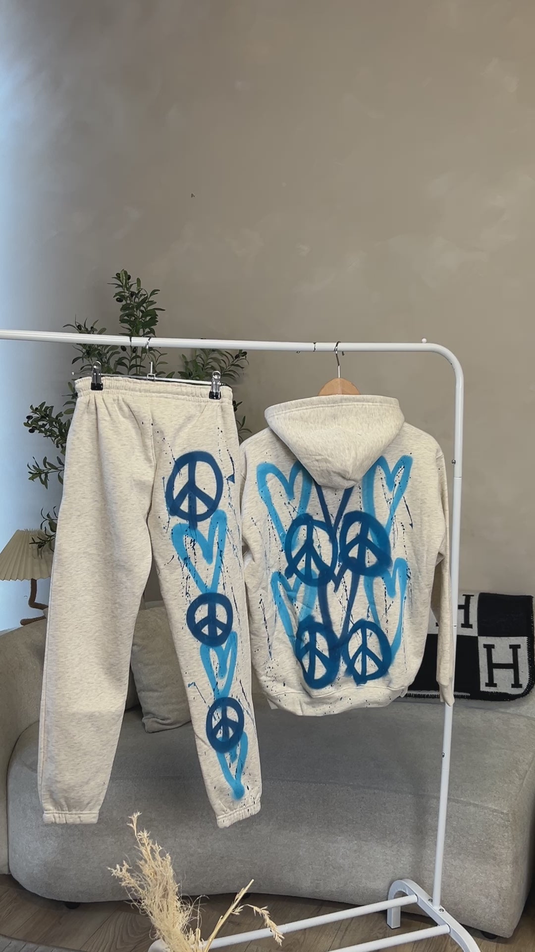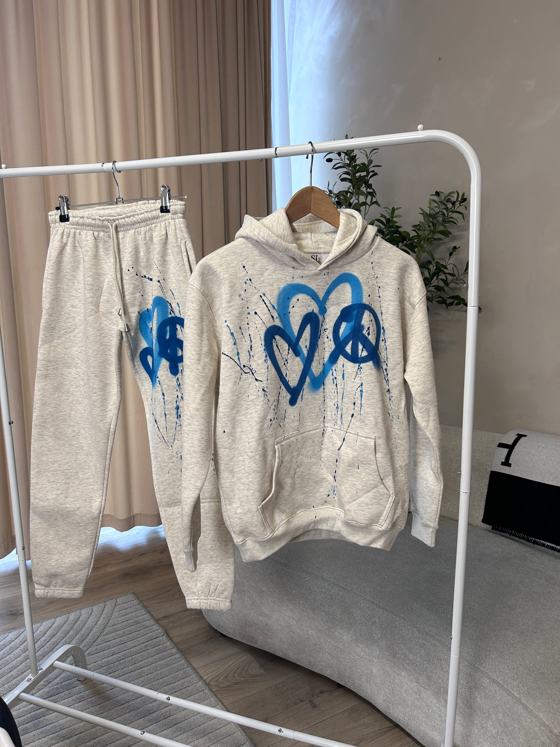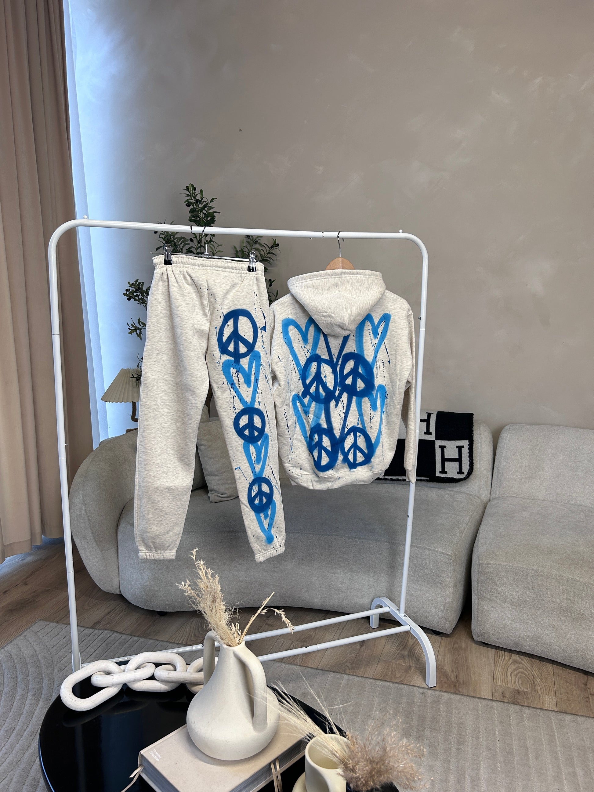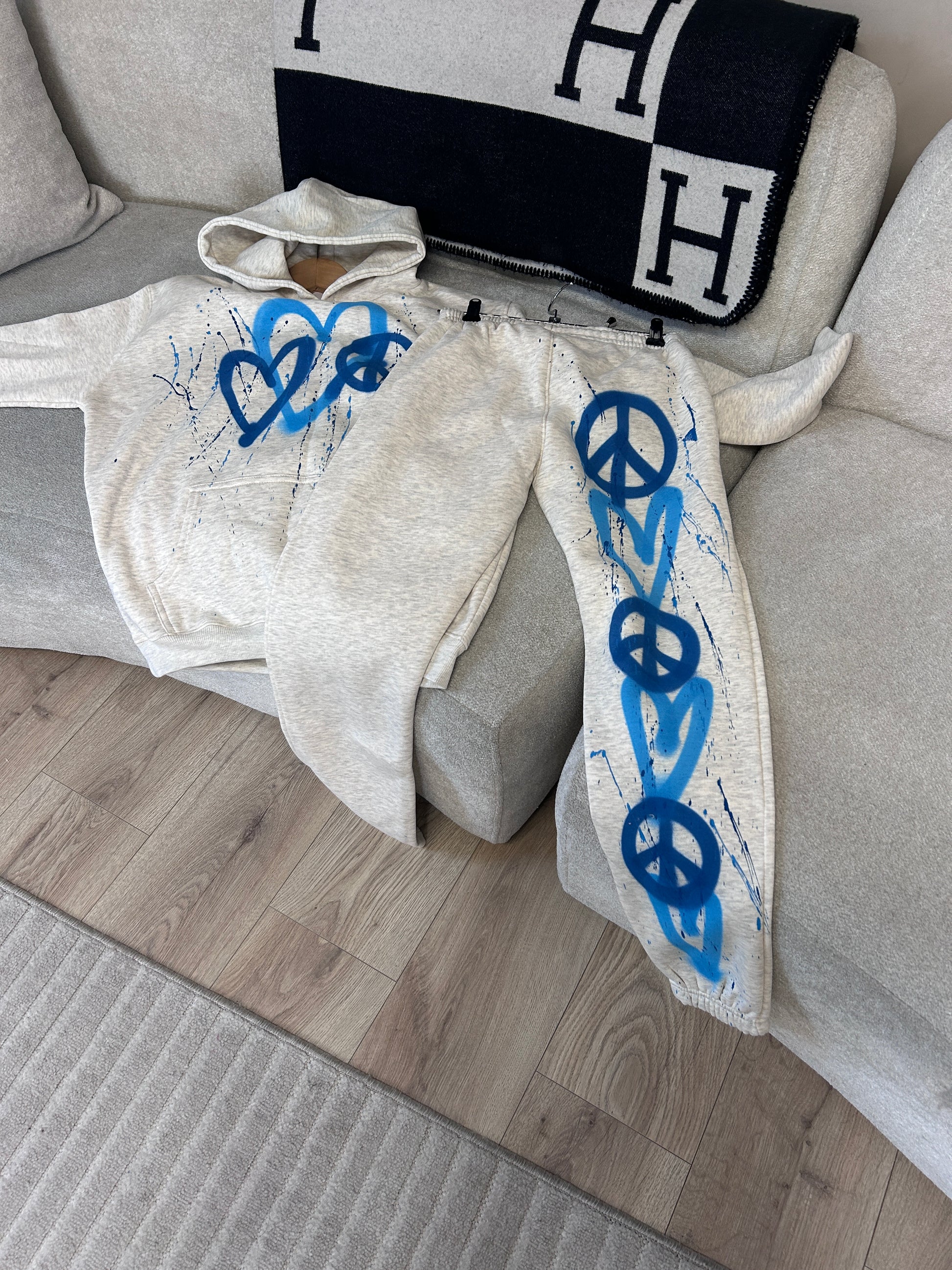 Girls blue spray hearts and peace grey hoodie tracksuit