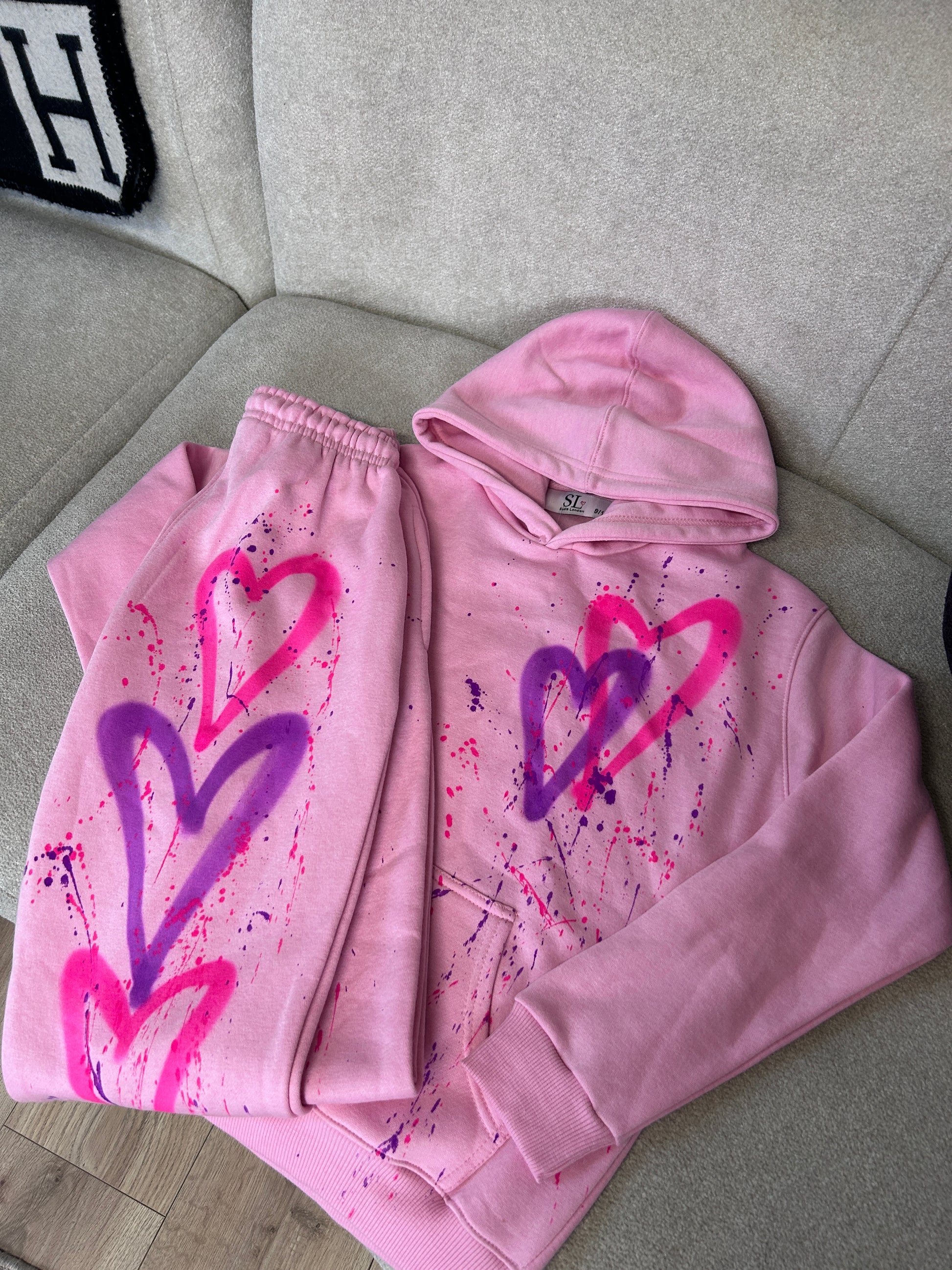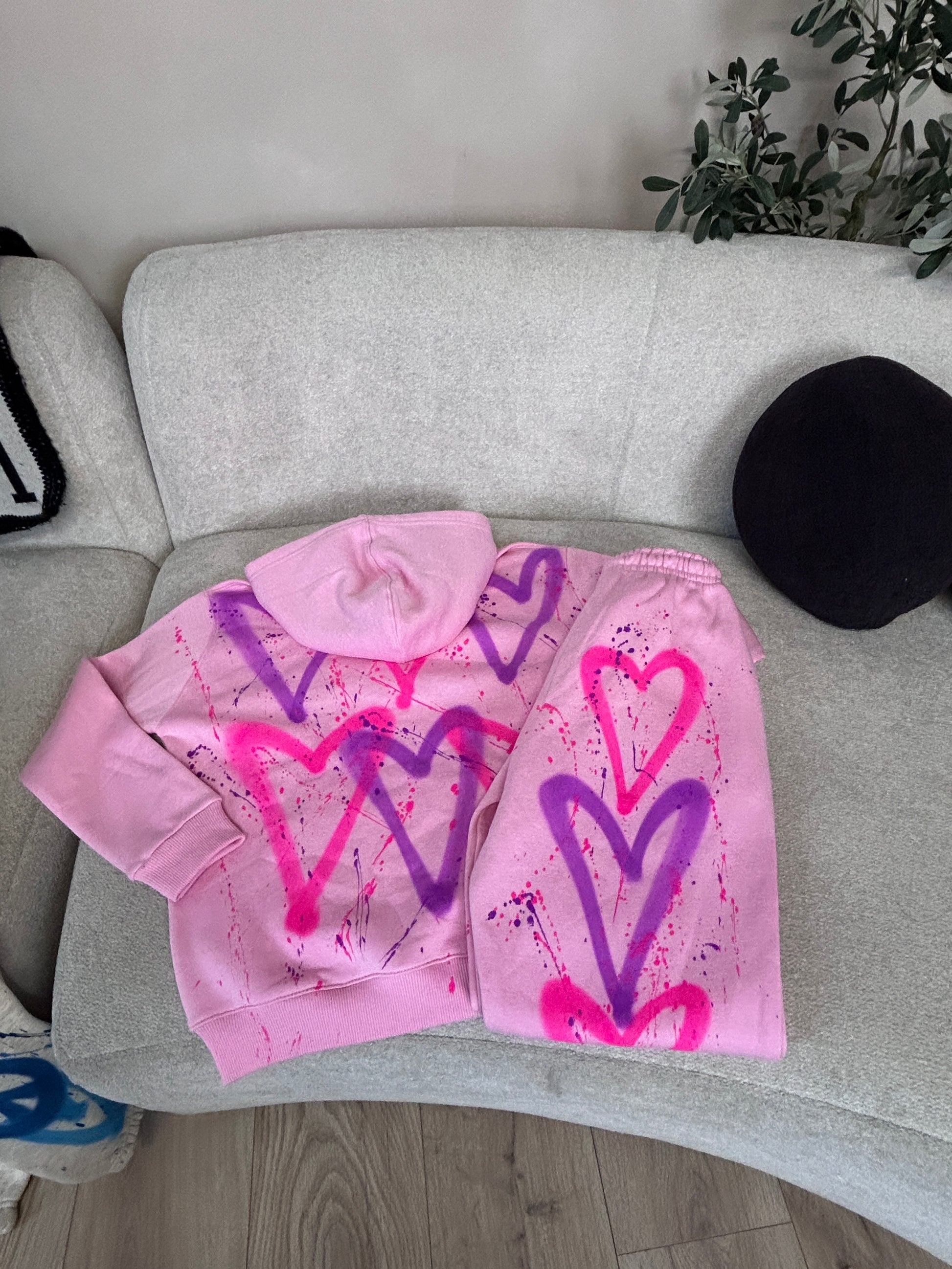 Girls Pink and Purple Spray Hearts Pink Hoodie and Jogger set 🩷