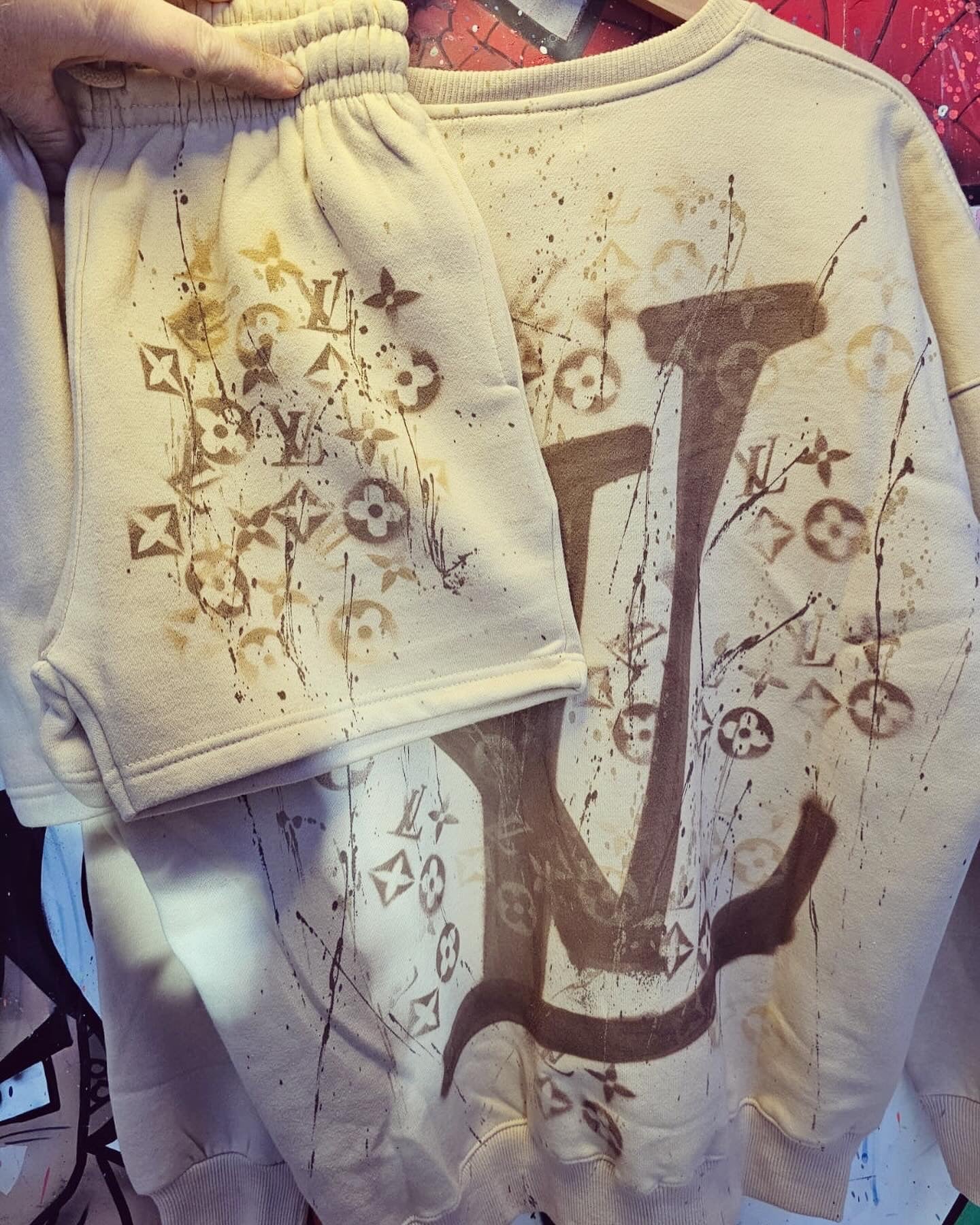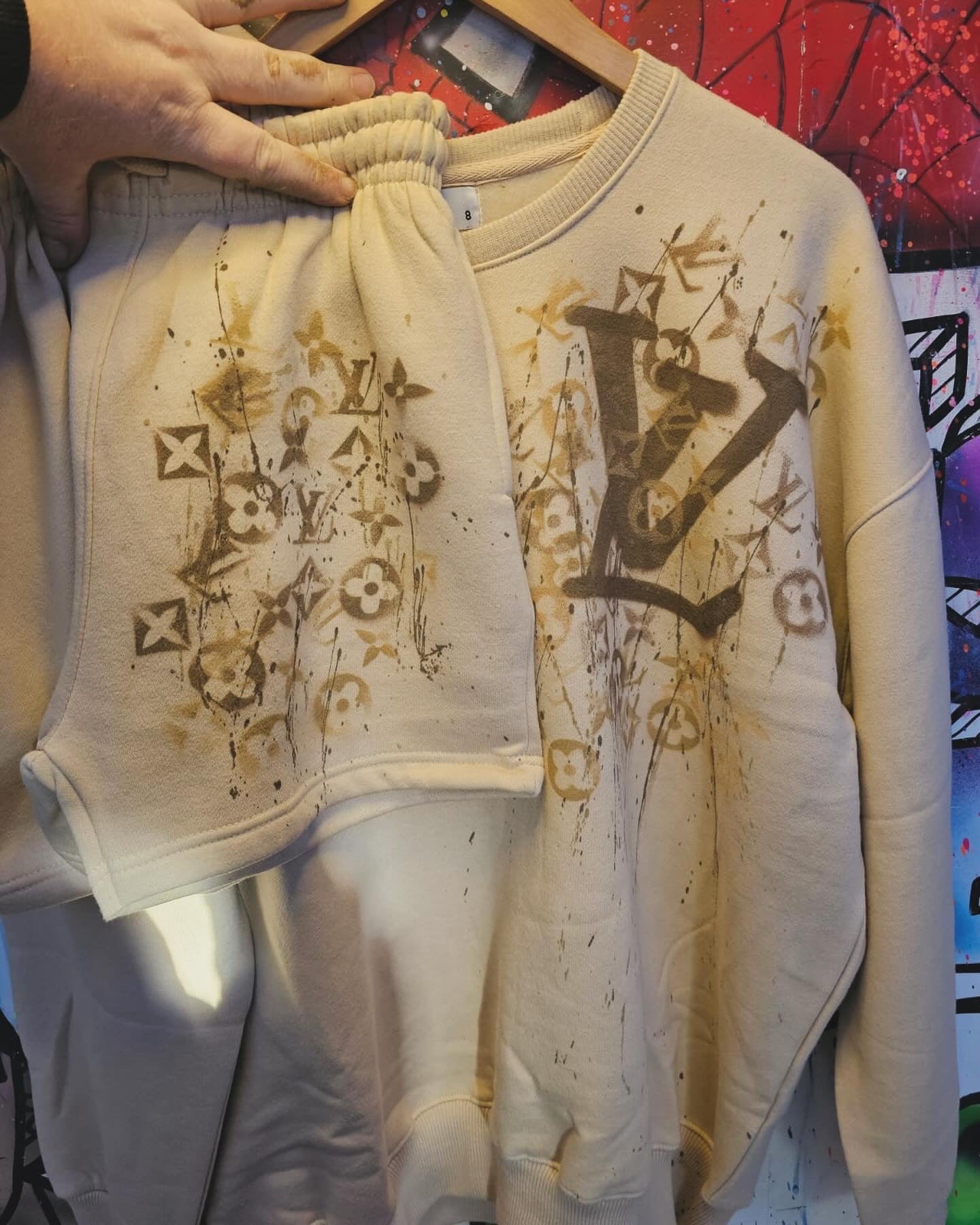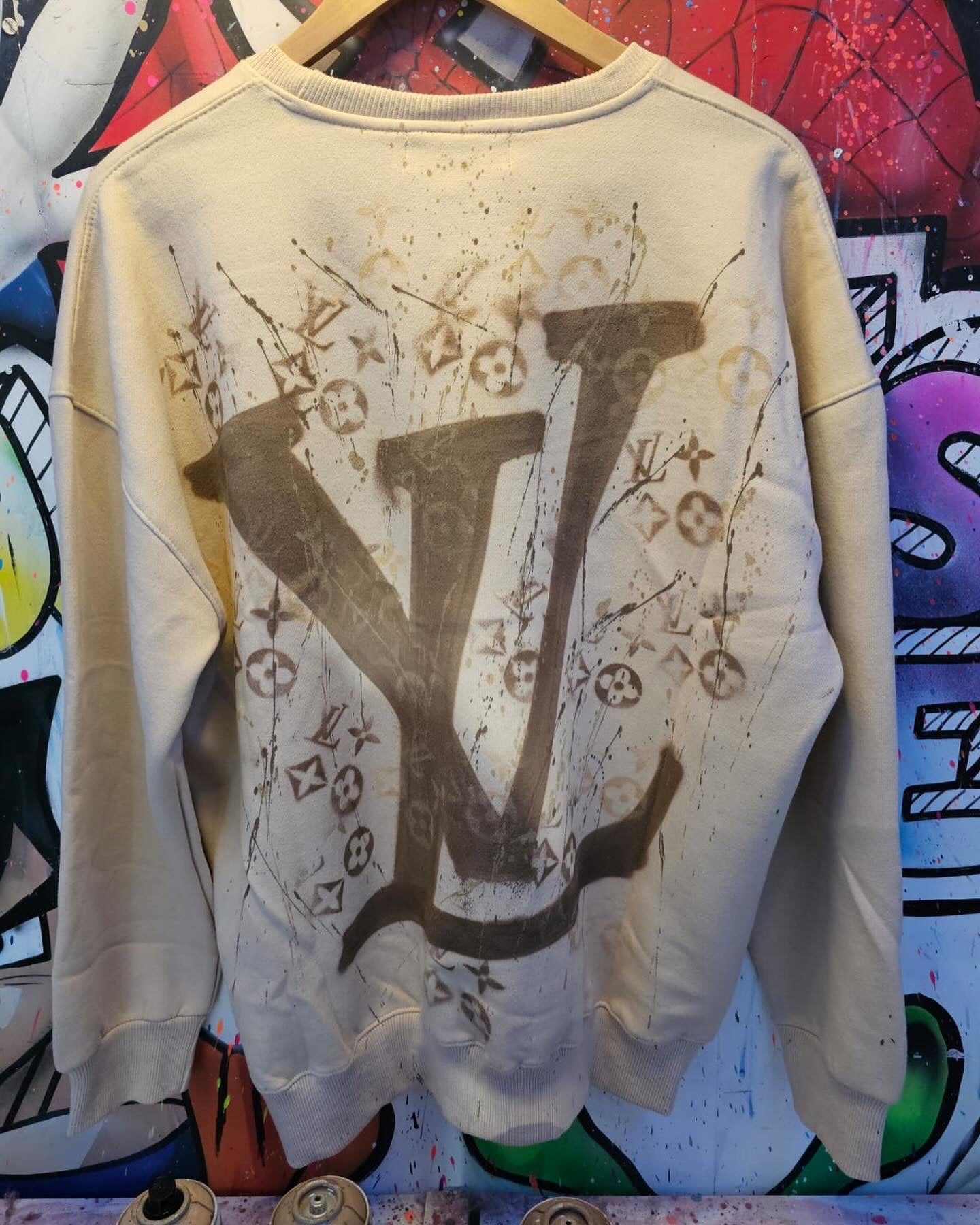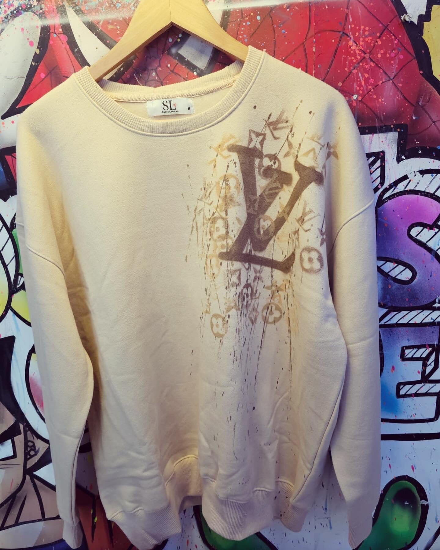 This garment is a bespoke graffiti design, sprayed by hand.